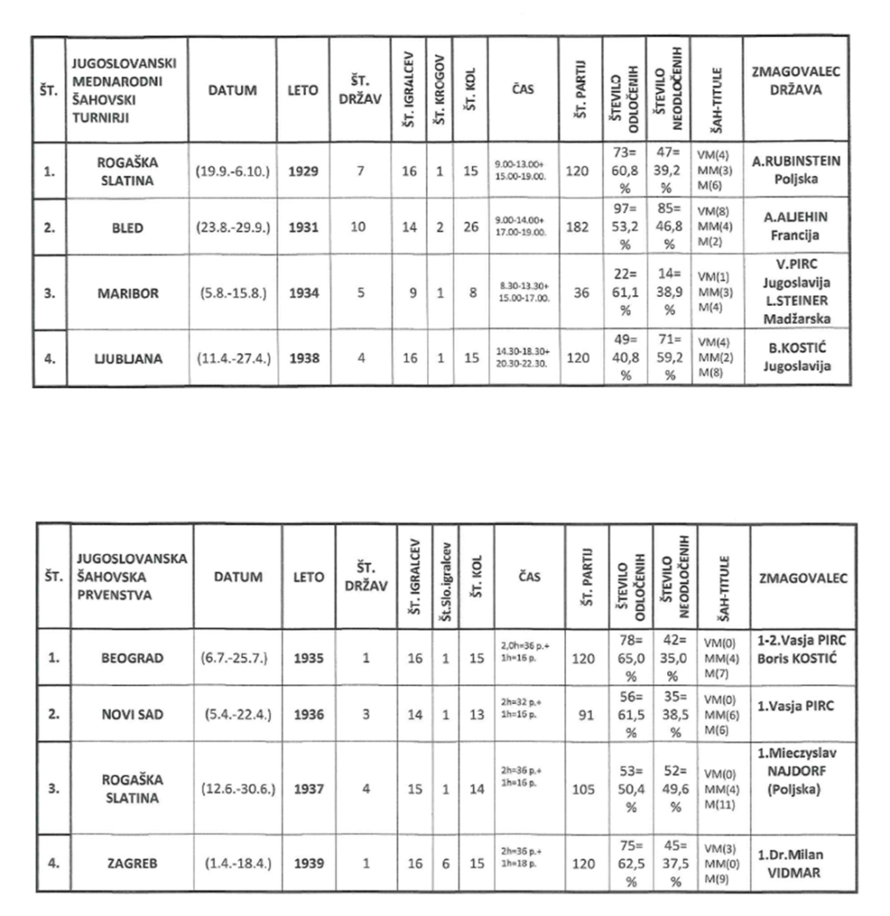 1.Milan Vidmar ml.-Mirko Bröder (0:1) 2.Anton Preinfalk-Nikolaj Kulžinski (1/2) 3.Ludvik Gabrovšek-Andrija Czanyi (1:0) 4.Boris Sikošek-dr.Radoslav Ilijć (1:0) 5.dr.Julij Gabrovšek-Dimitrije Živanović (0:1) 6.Alojzij Gerzinič-Žarko Popović (0:1) 7.Marjan Mlinar-Ernst Reiter (1:0) 8.Vlado Slokan-Bogoboj Atanacković (1:0)